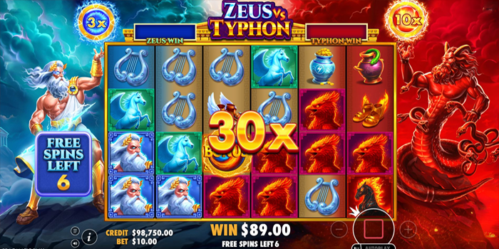 Slot Zeus Vs Typhon, salah satu permainan yang menampilkan pertarungan dua kekuatan besar dengan fitur-fitur dinamis.